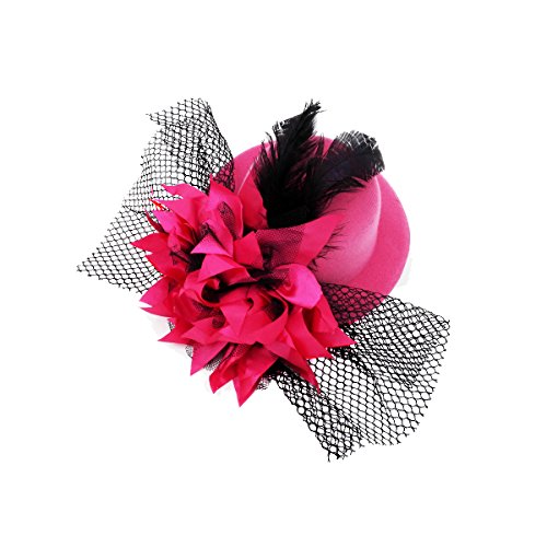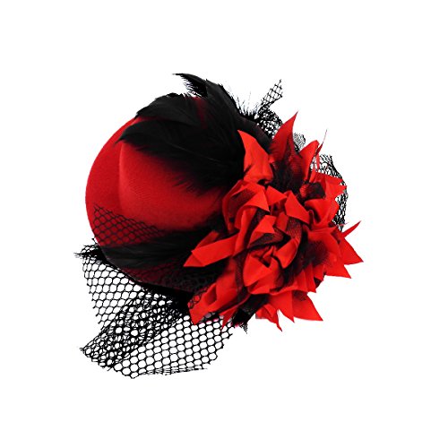 1 * Kalevel® Flower Hair Clip Feather hair clip Punk Mini Top Hat With Clips and Veil for Girls WomenFeature