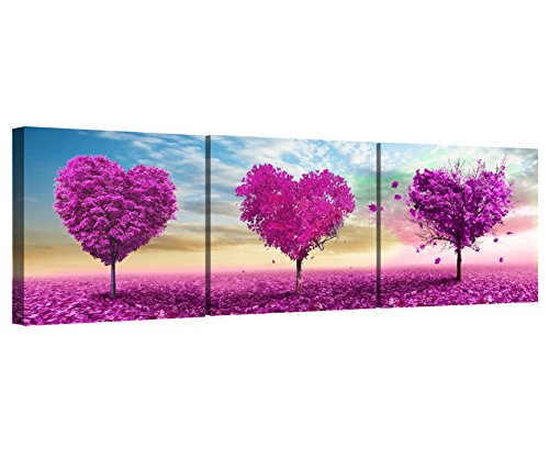 -. Title : Hafeez Center Decor Art 3 Panels Giclee High Definition P.R.Int Romantic Heart Trees Wall Art Deco Oil Painting Picture P.R.Int on Canvas Ready to Hang