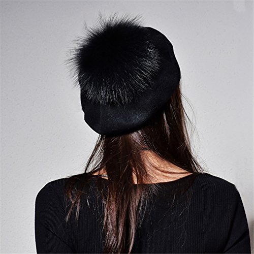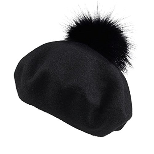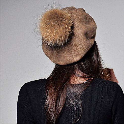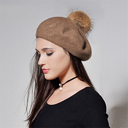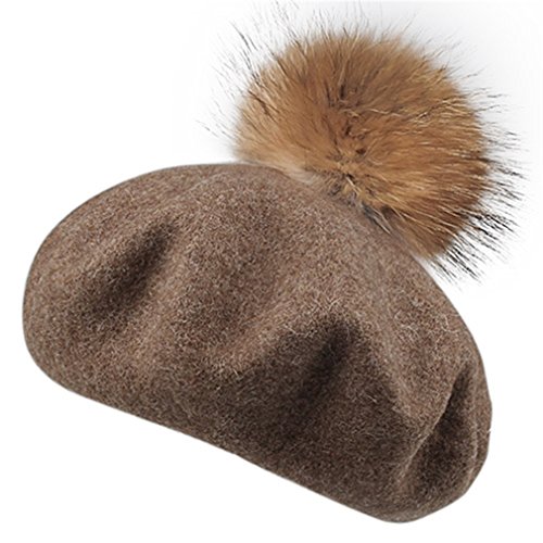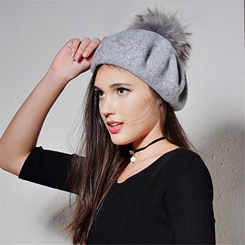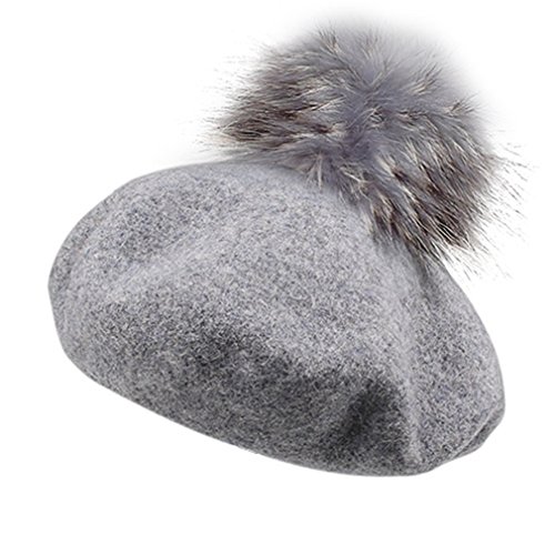 (Yastyen)/Accessories/Hats/DIRECT FROM USA/Wool Beret Hat Women Raccoon Fur Pom Pom Hats Girls With Detachable Pompom