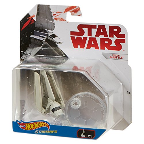 -. Binding : Toy -. Brand : Hot Wheels -. EAN : 0887961426540 -. Feature : Kids will love this iconic Star Wars starship / Attach the flight stand (included) to display your starship collection / Not for use with some Hot Wheels sets / Makes a great gift for kids, collectors and Star Wars fans of all ages / Collect them all! -. IsAdultProduct : 0 -. Label : Mattel -. Manufacturer : Mattel -. Model : FBB46 -. MPN : FBB46 -. NumberOfItems : 1 -. PackageQuantity : 1 -. PartNumber : FBB46 -. ProductGroup : Toy -. ProductTypeName : TOYS_AND_GAMES -. Publisher : Mattel -. ReleaseDate : 2017-08-24 -. Studio : Mattel -. Title : Hot Wheels Star Wars Imperial Shuttle Vehicle -. UPC : 887961426540 -. Warranty : 1 year warranty against manufacturer defects