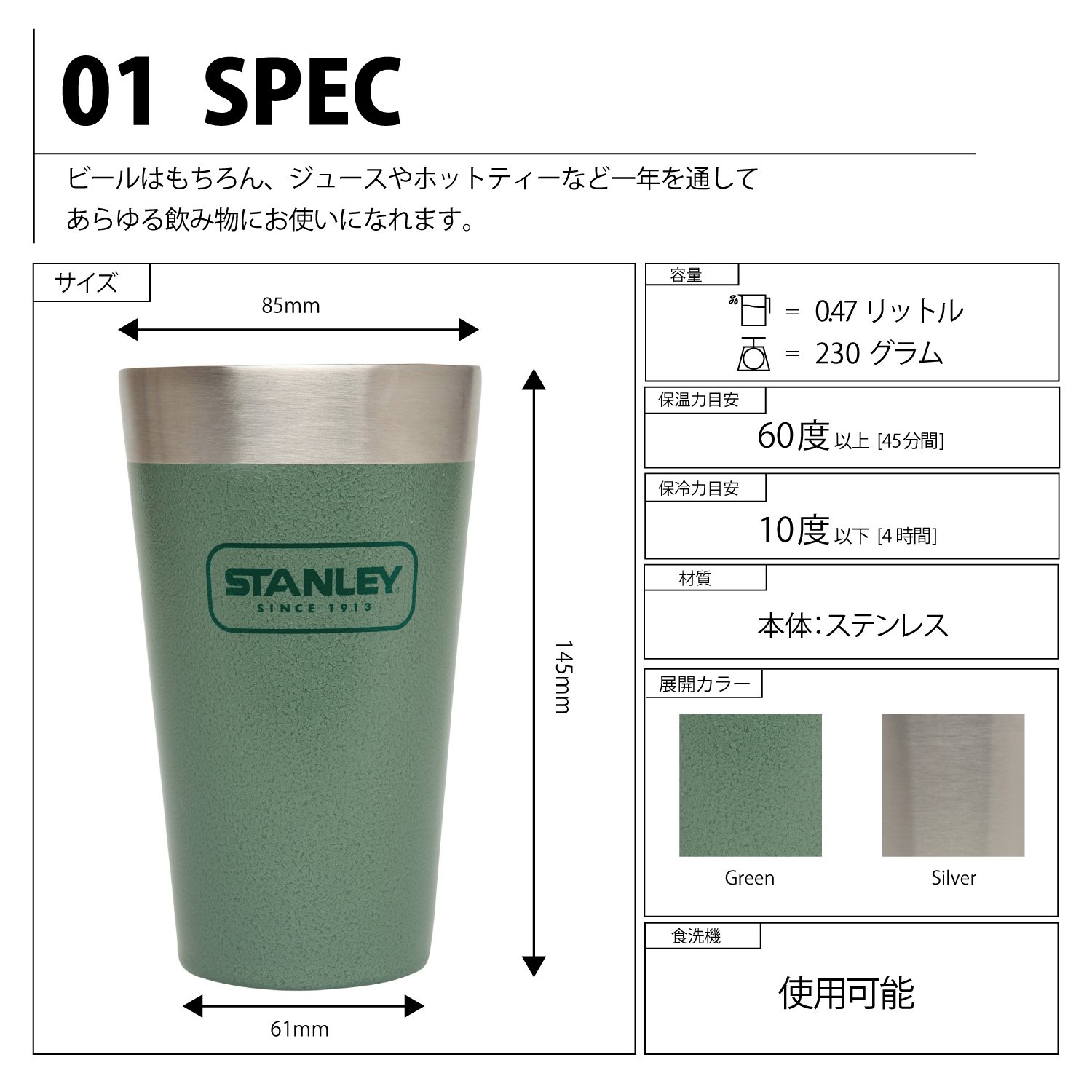 STANLEY (Stanley) stacking vacuum pint 0.47L Green 02282-005 (Japan genuine)