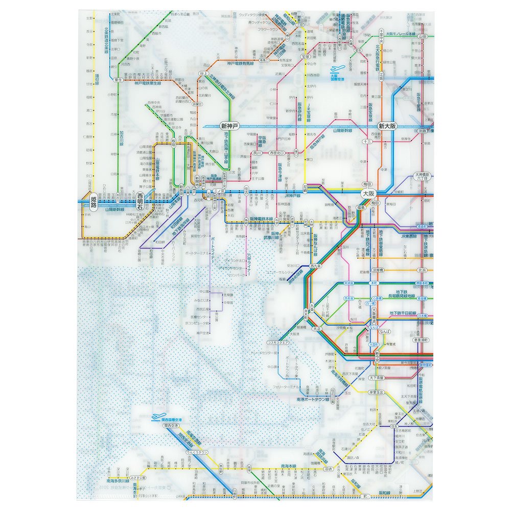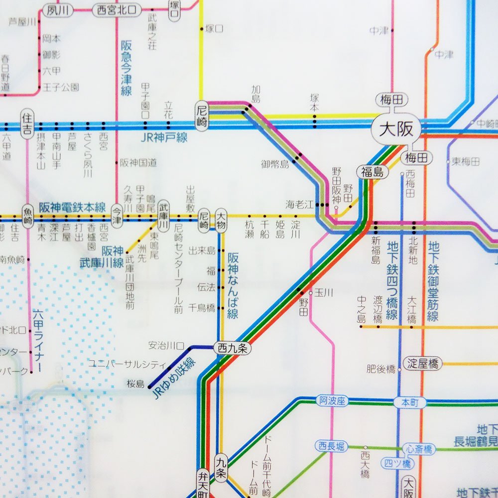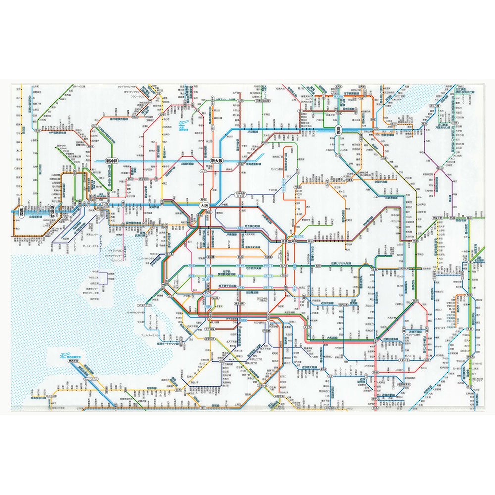Clear file of A3 size which posted the route network including JR · private rail · subway near Osaka.