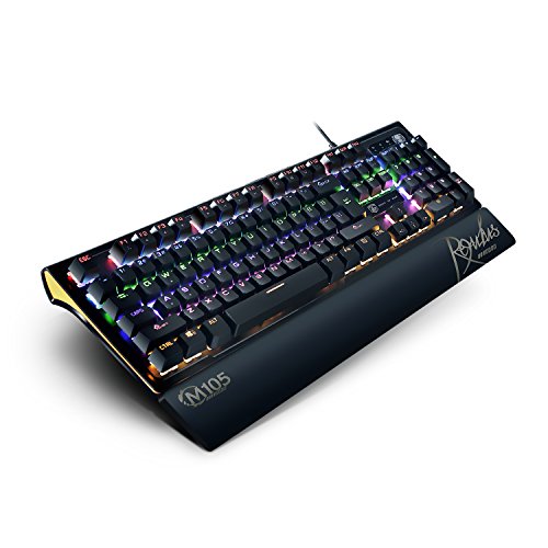 -. Feature : Rainbow LED Backlit 104-key anti-ghosting mechanical gaming keyboard for a more immersive, colorful typing and gaming experience. / BLUE SWITCHES ( WITH AUDIBLE CLICK SOUND): Sensitive and Responsive .Easy to press and fast response.FULLY REMOVABLE KEY CAPS: The included key cap puller makes cleaning or changing key caps easier. / Ergonomic design with detachable palm and wrist rest: Ladder design and wrist rest design can effectively prevent fatigue.Double-shot injection molded keycaps for crystal clear backlighting. / USB connector plug and play, no driver needed.non slip design, splash proof and durable. / Support computer system including Win10/ Win8/ Win7/ Vista/ XP/ 2000, OSX 10.2 or above.