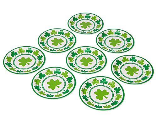 Studio : American Greetings Publisher : American Greetings Binding : Kitchen Product Description Make your St. Patrick's Day gathering more festive with printed dinner plates! This fun design features a bright and colorful array of green shamrocks to make them smile. With a sturdy construction, a 9-in. size and a beveled edge, this large party plate is perfect for serving up meals and snacks. Plates come in packs of 8 and are disposable, providing quick and easy cleanup when the celebration ends. Coordinate with other St. Pat's party supplies and celebrate with the luck of the Irish!. 0