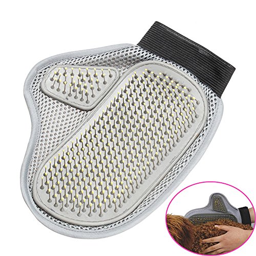 Pet Glove,WMTGUBU Bath Brush or Comb & Grooming Gloves & Massage Tool & Remove the Float Fur with Pin Comb Perfect for Dogs Cats Horses Rabbits(Gray)