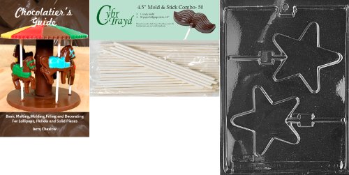 Cybrtrayd 45St50Bk-M071 'Star Lolly' Miscellaneous Chocolate Candy Mold with 50 4.5-Inch Lollipop Sticks and Chocolatier's Guide