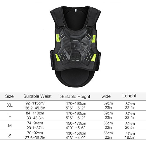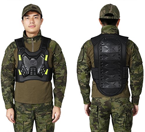 -. Feature : This body protective gear vest comes with great elastic force and wear resistance, anti-bump, and anti-fall. / Crafted back part to protect your chest, back, waist, and other important parts during cycling. / Quality environmental fabrics adopted, high foaming as middle part, and with nonbreakable plastic shell. / Great protector for motorcycle riding , cycling, skateboarding, skiing, etc. / Package include: 1 x Vest.