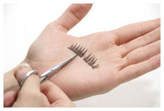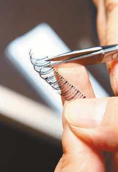 戴假睫毛的成败关键在于假睫毛的贴合度,对于菜鸟MM来说,遇到一整排的假睫毛,最好剪六到七刀,变成一撮一撮的,可大大降低失败风险。