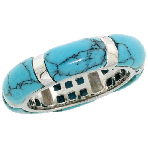 -. Title : Sterling Silver Domed Band Ring w/ synthetic Turquoise Inlay, 3/16" (5mm) wide, size 8