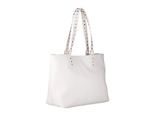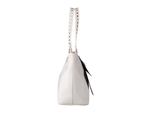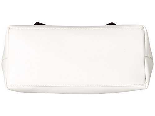 A beautiful black bow enhances the look of this feminine, functional cream bag in a bag tote from Betsey Johnson. Includes a black pouch wristlet along with a studded guitar strap shoulder strap for added style. • Have yourself a party with the dramatic Betsey Johnson® Bow Nanza Tote. • Made of faux leather. • Magnetic-snap closure. • Two flat carrying handles with stud embellishment. • Additional zipper bag included. • Exterior features a large bow detail at the front with polished gold tone hardware. • Flat base. • Lined interior features one zip and two slip pockets. • Imported. • Measurements: • Width: 14" Depth: 5" Height: 10" • Strap Drop: 9 inFeature