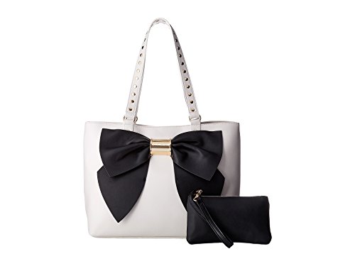 A beautiful black bow enhances the look of this feminine, functional cream bag in a bag tote from Betsey Johnson.