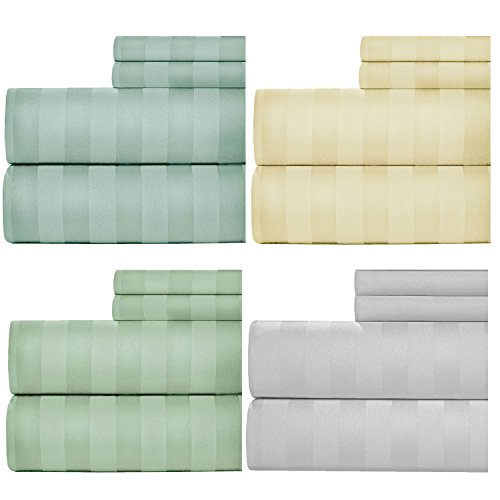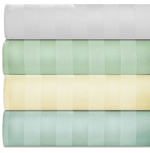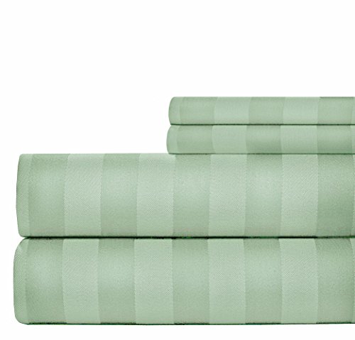 1000 Thread Count Damask Stripe Sheets, Dobby Bed Sheets Set (4 pieces set) - Cotton Rich - 15 inch Fully Elasticized Deep Pocket Fitted Sheet - Queen - Sage by Weavely