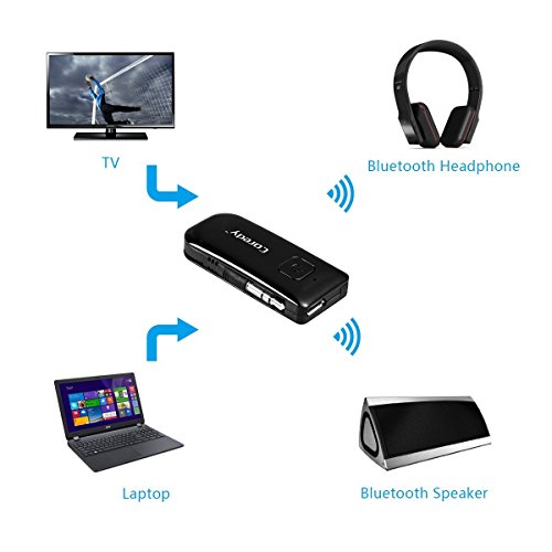 With Bluetooth V3.0 support up to 10 meters operating distance, enjoy Instant wireless pairing and streaming of audio easily with Bluetooth headphone, headset, speaker and other Bluetooth receivers. Auto switches off after about 5 minutes disconnected so can forget about it