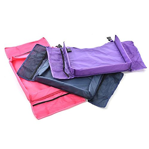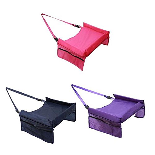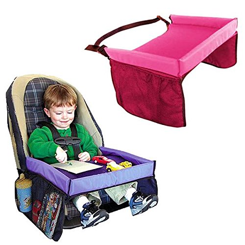 Features: Car seat tray provides flat, safe area to eat and play Fits most booster seats; buckles around children, car seats and strollers Materials: Nylon, Foam and Polyester Soft, durable, soft foam reinforcement folds on impact Includes 2 large side pockets and 3.25-inch wall stop Tray measures 15 inches across and 12 inches deep Recommended for on-the-go families Waterproof Easy to clean Available in Navy, Pink or Purple! 0