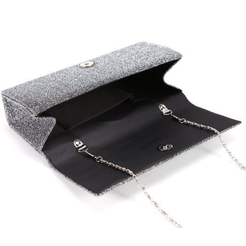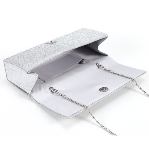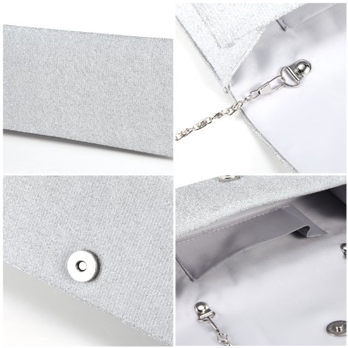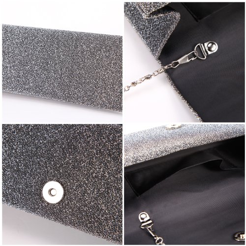- Feature : glitter-tone bag featuring a foldover top with magnetic closure, a chain shoulder strap. / Dimension: 9.5*2.1*3.7 inch (24x5.5x9.5cm) / Detachable chain strap: 46.4 inch (118 cm) / Package: clutch x1