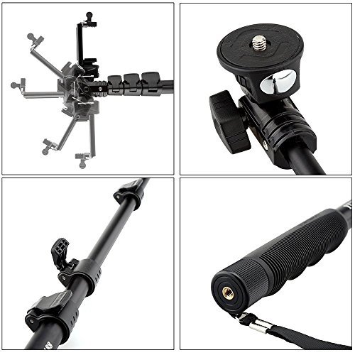 The extendable Selfie Monopod + Tripod mount adapter + Long Screw. It can work with all compact point and digital cameras that has self-timer and tripod. Adjustable Ball-head allow you to easily adjust angle, extends your reach when taking photos.