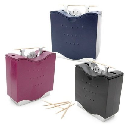 - Feature : A little man holds up a clean toothpick in his outstretched arms every time you lift and drop the cover. / A fun gimmick with a playful element of surprise. / A hygienic way to keep toothpicks. / Great conversation piece. / Refill the dispenser by lifting the top of the black cover.