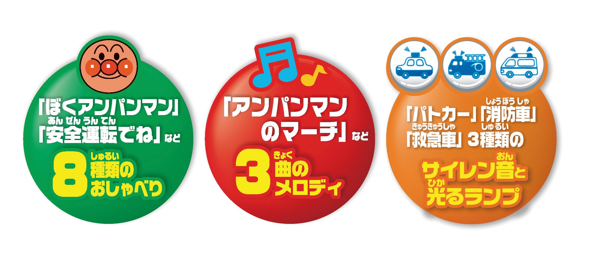 When the melody button is pressed, a total of three melodies, such as "Anpanman's March" will flow.