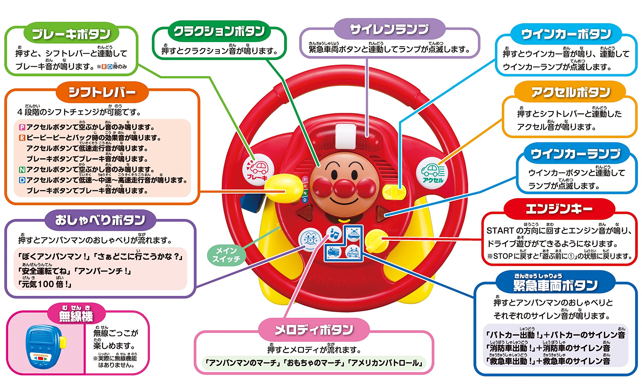 Talkative and sound effects, a lot of melodies, Drive experience Anpanman's handle is!
