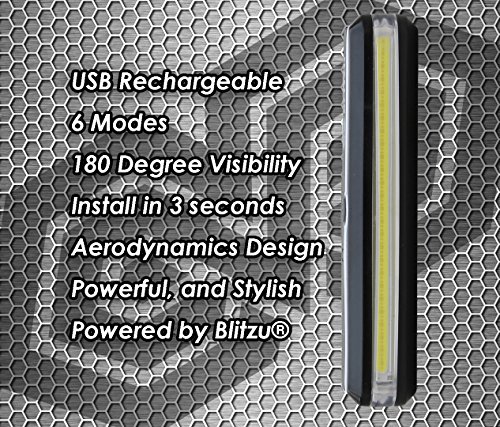 - Feature : ✔ Introducing the ALL NEW Blitzu Cyborg 168H Bike Headlight. It features 50 micro-LED chips emits up to 168 Lumens. Simple to install - Mount this bike front light anywhere you want in seconds, such as the handlebar, the seat post or anywhere on the frame. Mount this front bike light on the front of your helmet and you have yourself a bike helmet light. / ✔ NEW and IMPROVED - You deserve the best! The Cyborg is 50% larger and 15% brighter than our best seller Cyclops bike light. It provides more visibility than any other bike lights in the market! This improves safety tremendously as most bike-car collisions are due to inadequate side visibility. Practical, Reliable, and Durable. Drop-tested from 2 meter, impact resistant and built to perform. Water resistant rated to IPX4 - Protected against splashing water from any angle. / ✔ ULTRA-BRIGHT TO KEEP YOU SAFE - The Cyborg 168H bicycle light produces an extraordinarily wide-beamed of WHITE light which is eye-catching from all angles. Get the Bike light Set, Front and Back. We strongly recommend to equip your bike with the X1 Rear Light, the Cyborg 168T Bicycle Tail Light OR the Cyclops 120T Back Light to enhance maximum visibility on the road. / ✔ USB Rechargeable Front Bicycle Light - Stop Wasting Your Money and Never Buy Batteries Again. The Cyborg 168H bicycle head light charges from your computer or any device with a USB port. Only takes 2 hours to fully charge. This Bicycle Headlight has 6 modes: Low (6hrs run time), Mid (2hrs 15 mins run time), High (1hr 30 mins run time) , 50% Flashing (5hrs run time), 100% Flashing (3hrs run time), and Strobe (2hrs 30 mins run time). / ✔ ORDER NOW WITH NO RISK - We've got you covered! 100% SATISFACTION GUARANTEE- Your satisfaction is our guarantee! If you aren't happy with the Cyborg 168H front bike light for ANY reason within 30 days of purchase, let us know and you get your money back! That's how confident we are that you will love it!