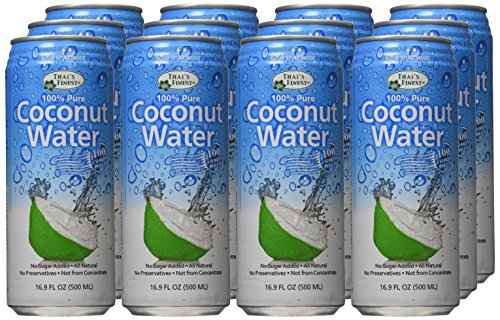 THAI'S FINEST 100% PURE COCONUT WATER, 16.9 OUNCE CAN (PACK OF 12)