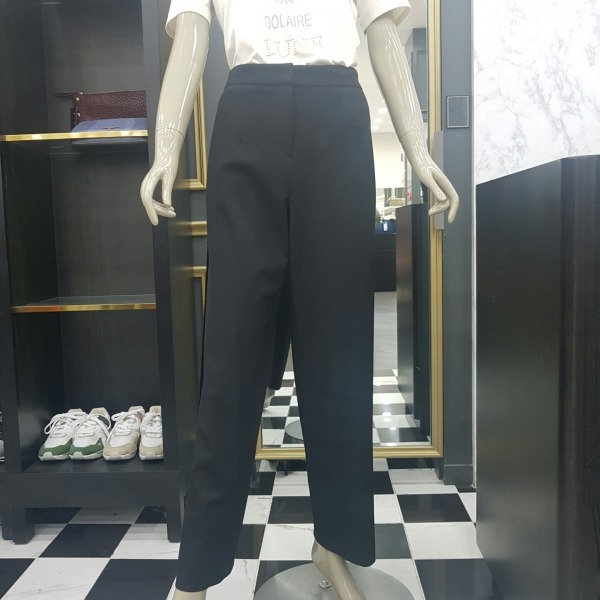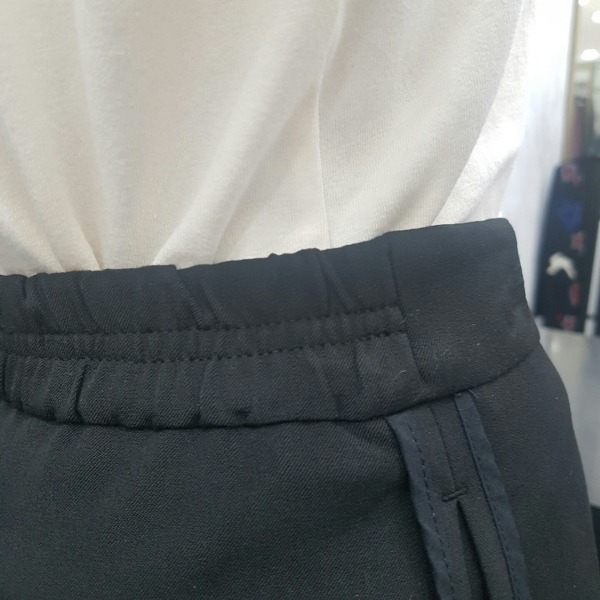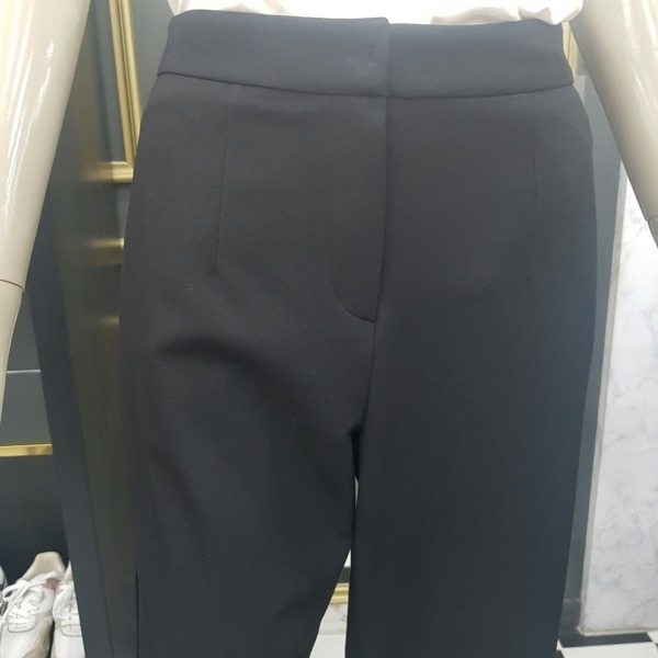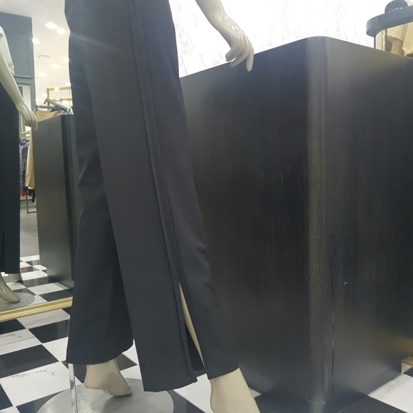 양 옆으로 솔기부분 밖으로 나온듯한 모양과 아랫단 슬릿이 캐주얼하며 세련되게