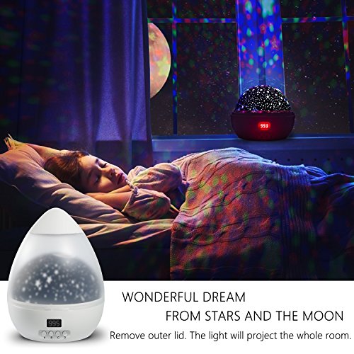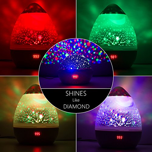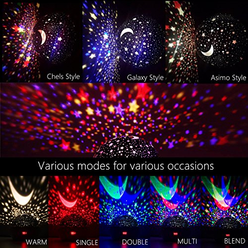 Creativity - 4 main lights-warm white, blue, red and green, a rotary button provide beautiful night light picture to your kids and baby! Give your lover a surprise and romantic moment, help your baby fall asleep easily. And the vivid starry sky help to develop your kids talent and creativity.