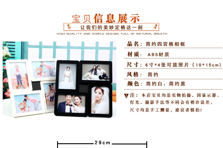 简约现代6寸相框相架摆台挂墙照片墙 儿童婚纱影楼四宫格组合框