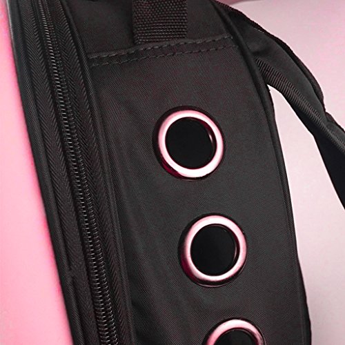 Description: Load less than 5kg/ 11.02pounce, for small cat or dog; Future designing, astronaut capsule shape, cool and fun; Cute look, 29X23X42cm/ 11.42X9.06X16.54inch,lovely pet bag; Nice for walks, bike rides and other outdoor activities, travel pet carrier helper; Transparent breathable cover, add more eyesight for pet puppies,more relief less fear.