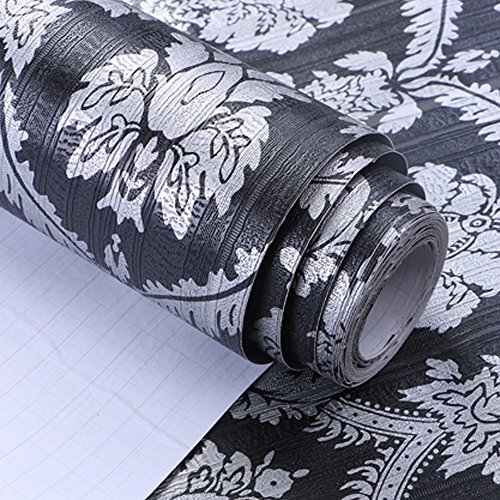 -. Title : SimpleLife4U Silver Damask 3D Embossed Shelf Drawer Liner Door Wall Sticker Valentine's Day Gift,23x196 inch
