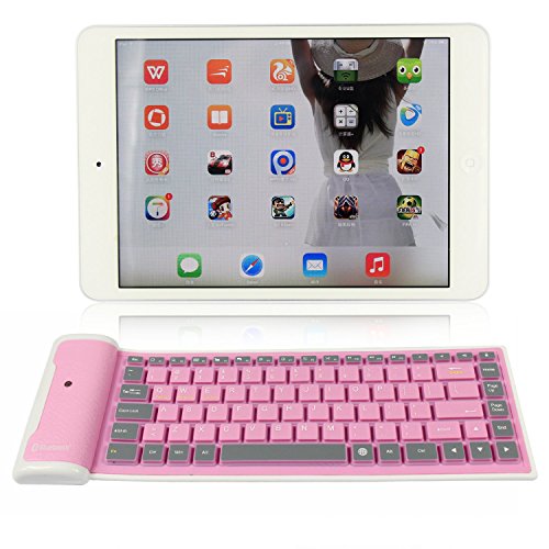 abcGOODefg® Ultra-thin Foldable Siliicone Waterproof Wireless Bluetooth keyboard for iPhone iPad Laptop Desktop Netbook MAC Computer HTC Nokia Sony Ericsson Motorola Samsung LG Blackberry Android Mobile Phones (Pink)