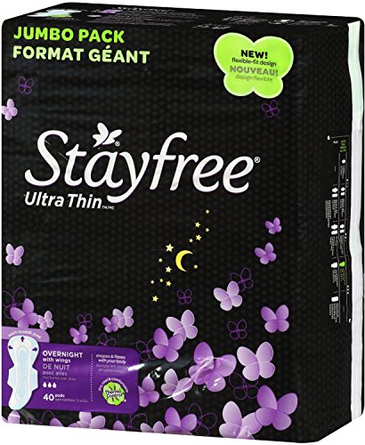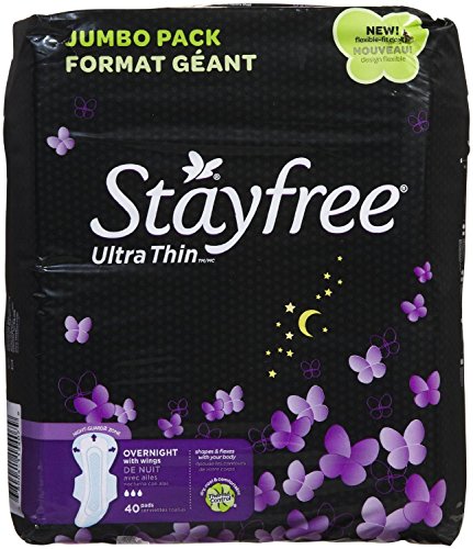 Stayfree Ultra Thin Pads with Wings, Overnight, 40 Ea, 2 Pack = 80 Total