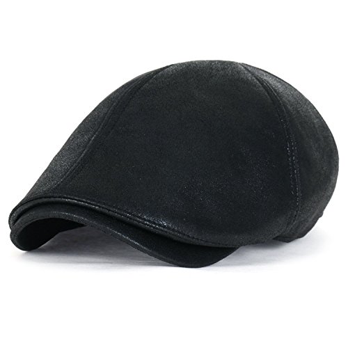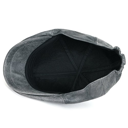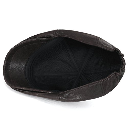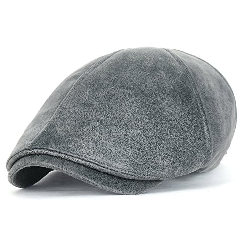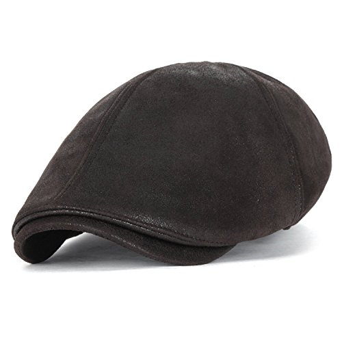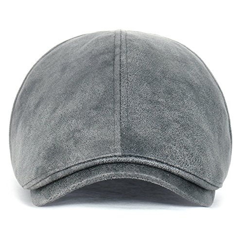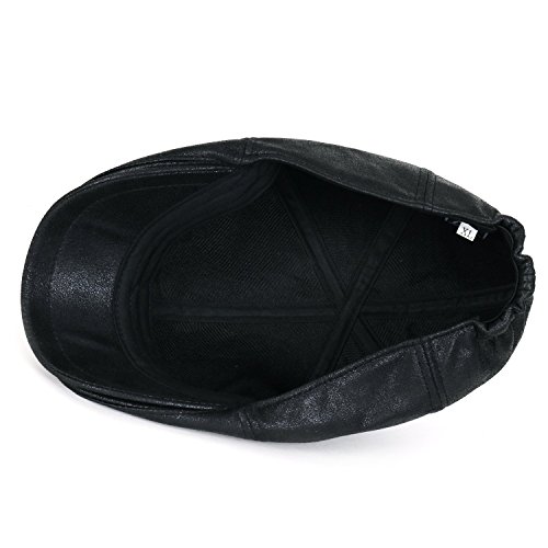 Style: classic vintage waxed faux leather newsboy hat vintage flatcap with sweatband Interior: no lining Crown: 6-panel ivy cap fit, with elastic band at the back FOR STRETCH, BETTER FIT AND COMFORT Brim: small stiff brim in front, brim width: approx. 5.5cm Feature: CLASSIC 5 COLORS- grey, dark brown, light brown, maroon and black. soft touch waxed synthetic leather solid color newsboy hat. QUALITTY GOOD MATERIAL. elastic band at back of cap for EASY WEARABILITY, COMFORT AND FIT Medium: approx. 58cm (7 1/4) XL: approx. 61cm (7 5/8)