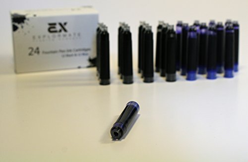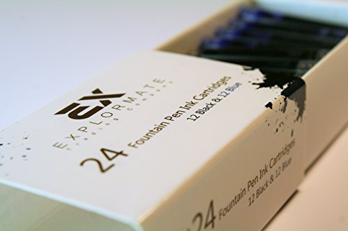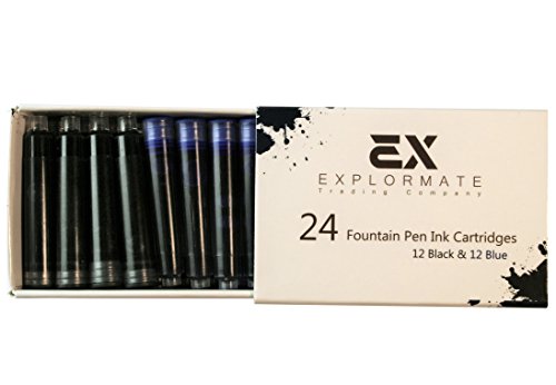 -. Title : Explormate Fountain Pen Ink Cartridges - 24 Platinum Universal Black and Blue Cartridges - Compatible with Refillable Fountain Pens and Bamboo Calligraphy Pen Sets - Preppy Combo for Fine Writing