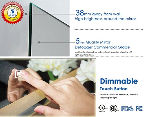 - Dimmable-touch button control of the LED light backlit mirror for 3 seconds, then you can adjust the light from 0-1600lm, 80% energy saving LED light last more than 50000 hours