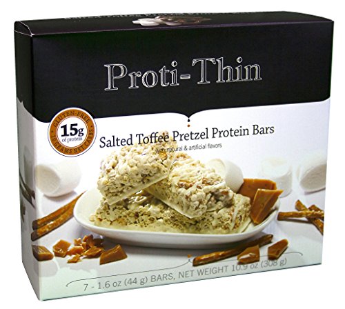 -. Title : Proti-Thin - Salted Toffee Pretzel Protein Bar - 15g Protein - Low-Carb Diet Bar - High Fiber Snack Bar - Gluten Free (7/Box) …