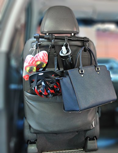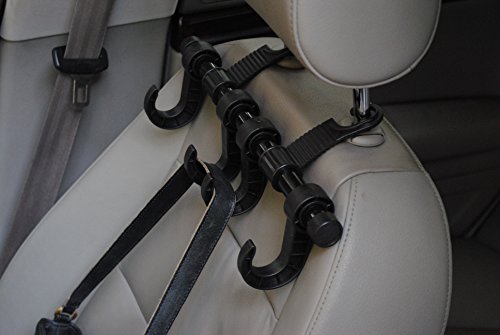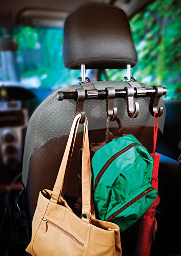 - Feature : Holds shopping bags, coats, handbags, trash bags and umbrellas / Simply attaches to any twin post headrest with post diameters of 1/2 inch or less / Four very sturdy multi-purpose hooks help organize your belongings and save precious foot room / Holds up to 20 pounds total (5 pounds per hook) / Holds shopping bags, coats, handbags, trash bags, umbrellas and more. / Simply attaches to any twin post headrest with post diameters of 1/2 inch or less. / Five very sturdy multi-purpose hooks.