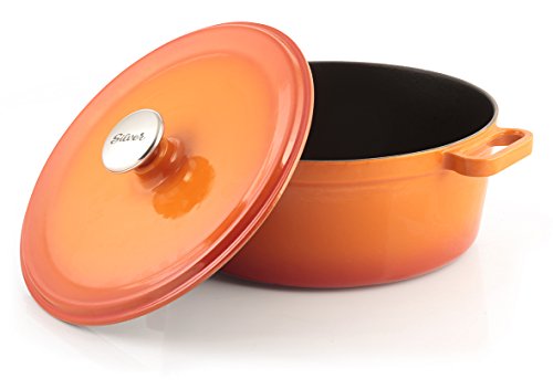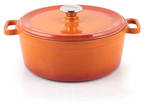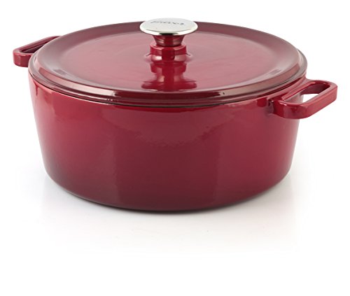 Durable enameled cast-iron is one of the preferred materials for kitchen cookware. Contains no toxic anti-stick substances, is resistant to high heat (oven safe), conducts and distributes heat evenly