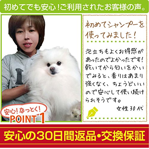 • <使用方法> ぬるま湯で予洗いし3倍ほどに薄めた シャンプーをよく泡立てて全身にかけ洗います。使用後もよく洗い流します。