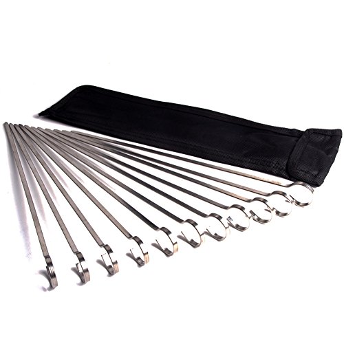 Stainless Steel Flat Skewer with Free Bag ( 12 inch ), Grillgo Skewers for Kebab Kabob, Set of 12