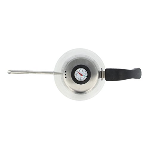 With strong passions for coffee and tea, we spend huge amount of research and time to deliver the best quality product that produce the prefect drink every time ... this premium stainless steel kettle come with elegant built-in thermometer and provide the optimum temperature range for the prefect brew. The unique gooseneck spout and kettle body are connected via rivet technique which will help to minimize water leakage issues under long term Usage. The kettle lid, which come with ergonomic handle for safe and comfortable use, stays in place even when pouring at close to 90 degree angle.Feature