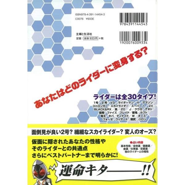 【商品基本情報】 商品名称:仮面ライダー占い 著者/出版社:仮面ライダー占い製作委員会 編/仮面ライダー占い製作委員会 編 初版発行日:2013/12/24 サイズ:A5判 ページ数:116 ISBN/JAN:9784391144543/4528189447707