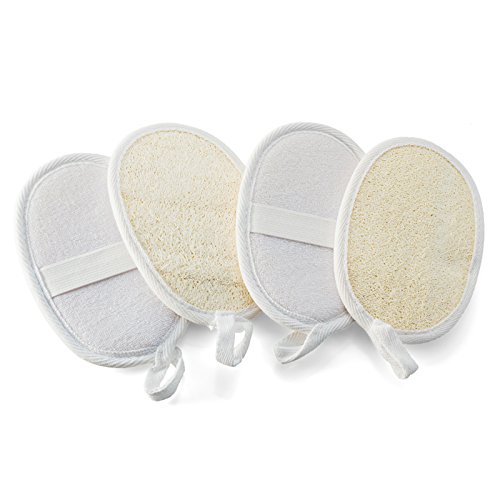 -. Title : 4 Pack Exfoliating Loofah Pads, 100% Natural Loofah Sponge for Men and Women, Perfect for Bath, Spa and Shower Scrubber Brush