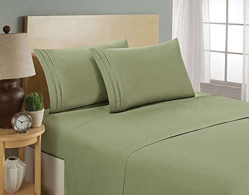 1500 Thread Count CHAIN DESIGN Egyptian Quality Luxurious Silky Soft HypoAllergenic WRINKLE & FADE RESISTANT 4 pc Sheet set, Deep Pocket Up to 16" - California King Sage