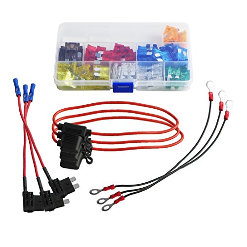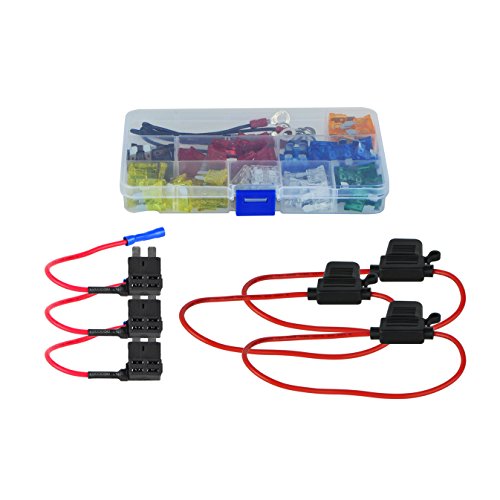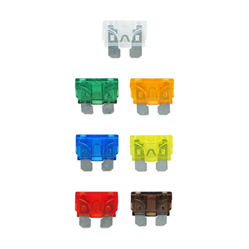 About 110 Piece Small Fuse Kit. What is a Fuse? A safety device consisting of a strip of wire that melts breaks an electric circuit if the current exceeds a safe level - Automotive fuses are a class of fuses used to protect the wiring electrical equipment for vehicles. The Blade Fuses Pack provides everything you need to protect your vehicle electrical devices from a short circuit or overload. Package Included: 10 pieces of 5 Amp 10 pieces of 7.5 Amp 20 pieces of 10 Amp 20 pieces of 15 Amp 20 pieces of 20 Amp 20 pieces of 25 Amp 10 pieces of 30 Amp 3 pieces of 16 AWG mini blade ATM Waterproof holder 3 pieces of Add-a-circuit 16 AWG mini taps 3 pieces of Earth wire Feature: 1.Contains the seven commonly used replacement fuses for most vehicles. 2.Clear Identification - Amp color coded Amp numbers carved on the fuse for easy recognition. 3.Convenient Storage - Small molded case protects fuses, provides easy transport, fits in your glove box or trunk in case of an emergency. - Case has re-locking snaps, so it can survive being in a glove compartment or trunk without spilling everywhere. 4.Price-Much cheaper than buying them at your local automotive store. 5.Nice to have lots of spare fuses if you have lots of equipment. 6.Perfect for any mechanic or repair shop. 7.Generally rated for circuits no higher than 24 volts direct current. Can be used for:Cars SUVs,Trucks,Motorcycles,Homes,Boats,Camper,RVs,ATVs,Quads,UTVs,Golf etc.