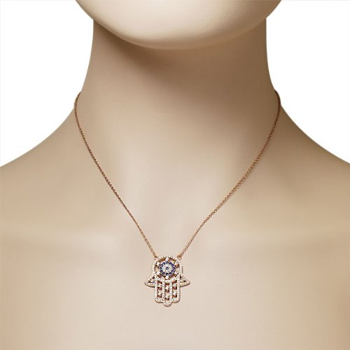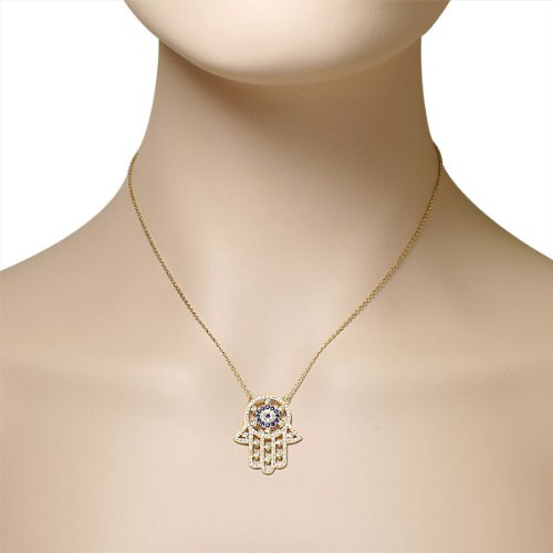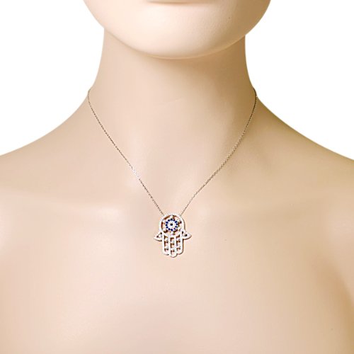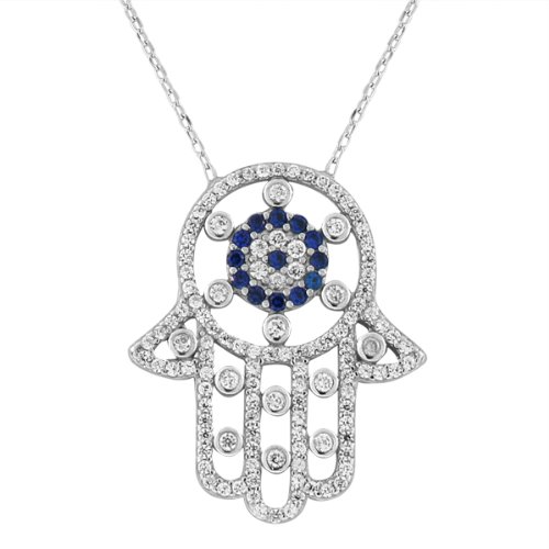 -. Title : 925 Sterling Silver Evil Eye Hamsa White Blue CZ Large Womens Pendant Necklace