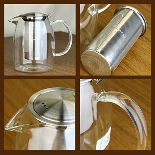 Toyo Heat Resistant Glass Teapot with Removable Stainless Steel Infuser 1200ml / 40 oz