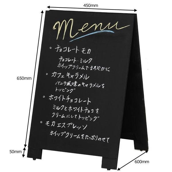 レストランやカフェなどに最適なA型黒板です。店頭でのメニュー表示や告知など様々な用途にお使いいただけます。