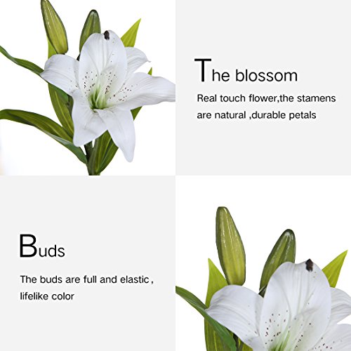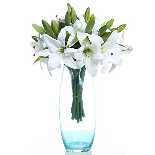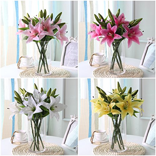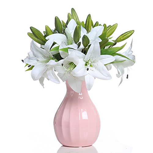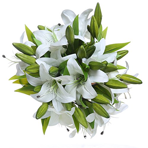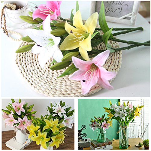 Veryhome 5pcs Artificial Flowers Lifelike Artificial Lilies for Home Party Wedding Decor White