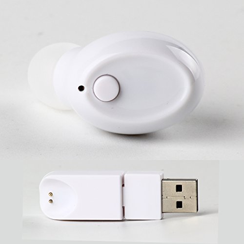 -. Feature : MINI SIZE & USB CHARGER: this mini earbud well fits ear and nearly seems invisible (0.18oz, smaller than coin), really lightweight and portable for music and talk; without long winding charging cable, this earbud has a mini USB charger, just plug it in and charge it either in your computer, your cell phone charger or any device supporting USB port. / HIGH-FIDELITY SOUND: though mini size, this bluetooth earbud offers high-fidelity sound with high-quality bluetooth chip and speaker; Bluetooth V4.1 ensures good connection, working within 33ft; / LONG BATTERY LIFE: the built-in rechargeable battery guarantees 6-8 hours for talk and 4-6 hours for music, while only needs 1-2 hours for charging; the battery life displays on the upper right corner of phones(with IOS devices). / MUSIC & TALK HANDS FREE: you won't miss calls while enjoying music, and the built-in Microphone makes it hands free to answer calls. / UNIVERSAL COMPATIBILITY: it is compatible with almost all Bluetooth-enabled devices, including smart phones/ipads/laptops, MP3 & DVD players, etc.;